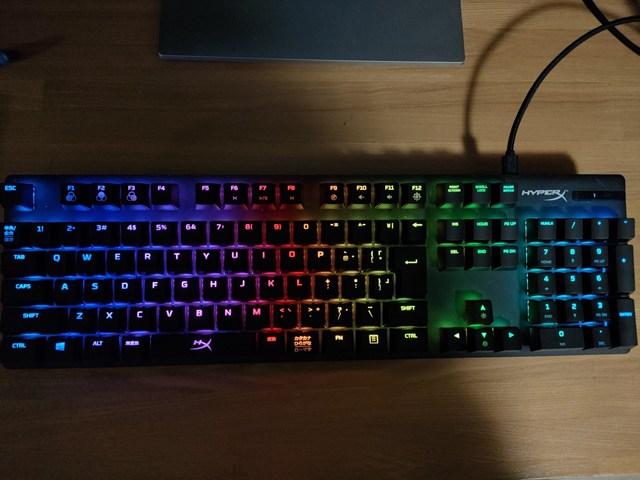 HyperXよりはキーがしっかり打ち込んだ感覚があるのと音が静かなので個人的にはHyperXより好きです。